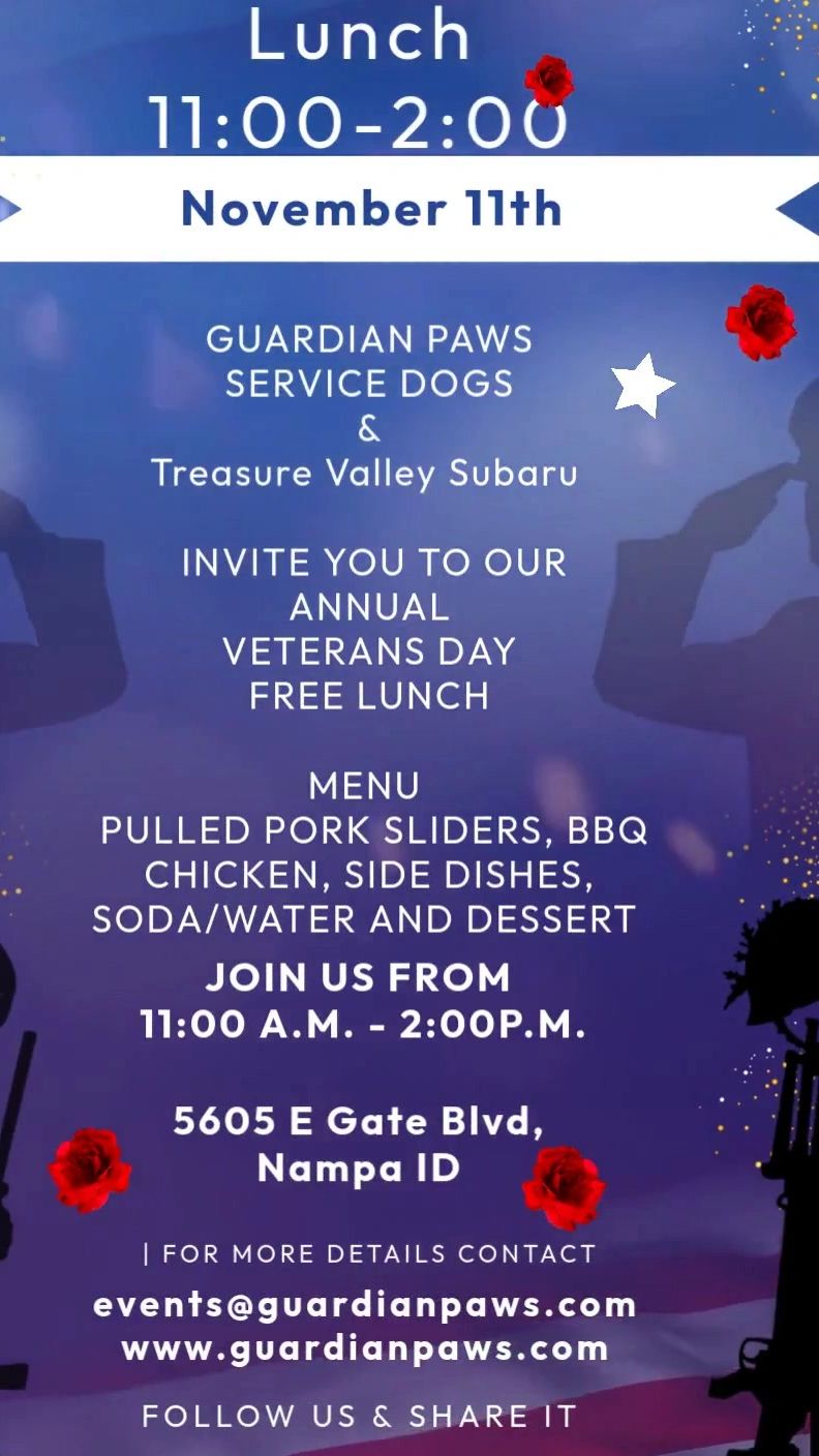 Please join Guardian Paws Service Dogs as we host our 4th annual Show'n'Shine "The Dog Days of Summer". All proceeds from this event will stay in the Treasure Valley to support local Veterans and their Service Dogs. PLEASE FILL OUT THE PDF FORM BELOW. Email your form to events@guardianpaws.com or mail the registration form and registration check to: Attention: Guardian Paws Service Dogs 804 Royal St, Caldwell, Idaho 83605
